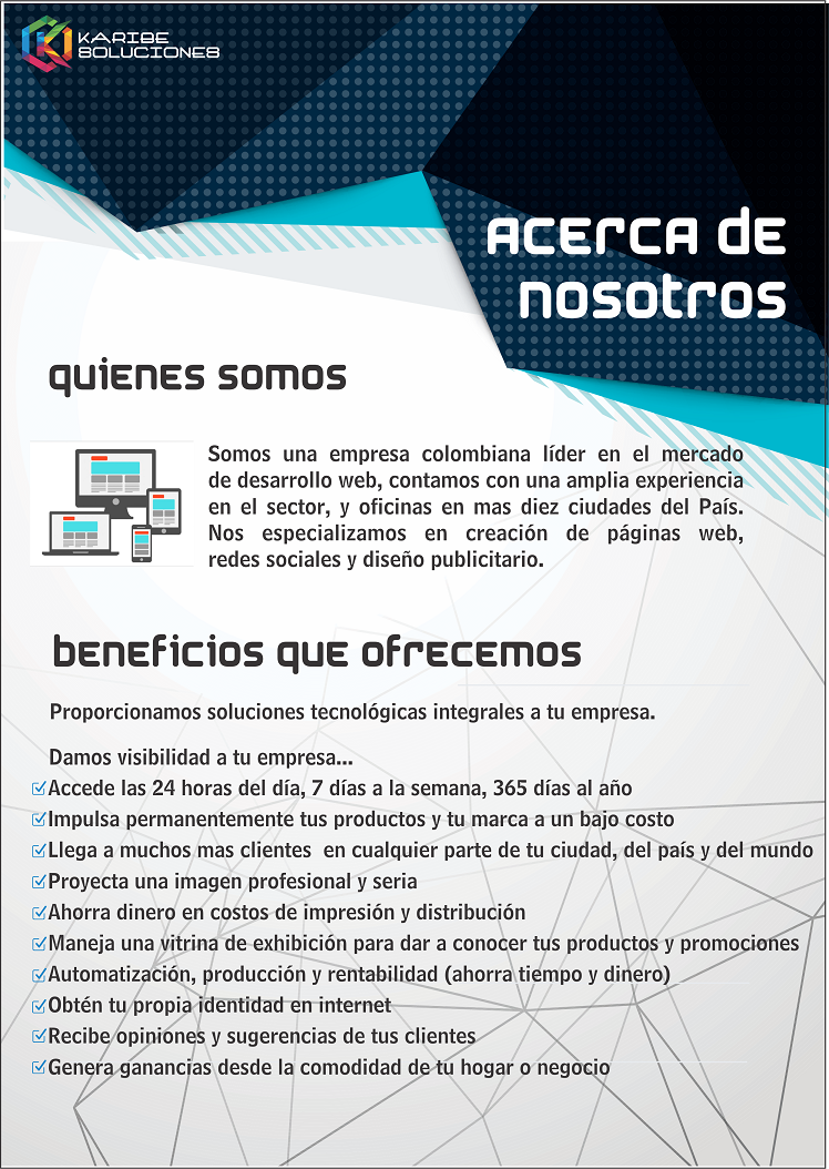 Somos una empresa, que nació para satisfacer las necesidades, de pequeñas y medianas empresas en su proceso de crecimiento y ayudarlas a posicionarse en el mercado, dejando una muy buena reputación para sus clientes y consumidores de sus productos y servicios.